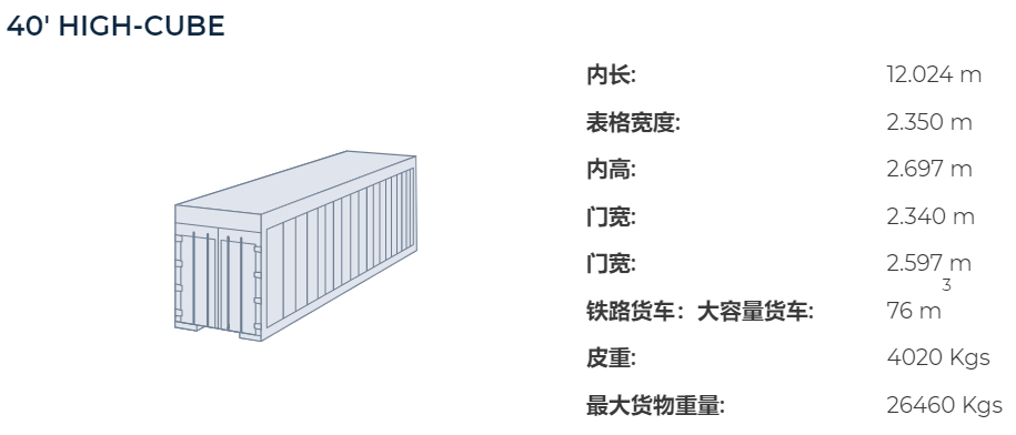 40尺柜海運集裝箱尺寸規(guī)格,40尺集裝箱體積重量參數(shù)表
